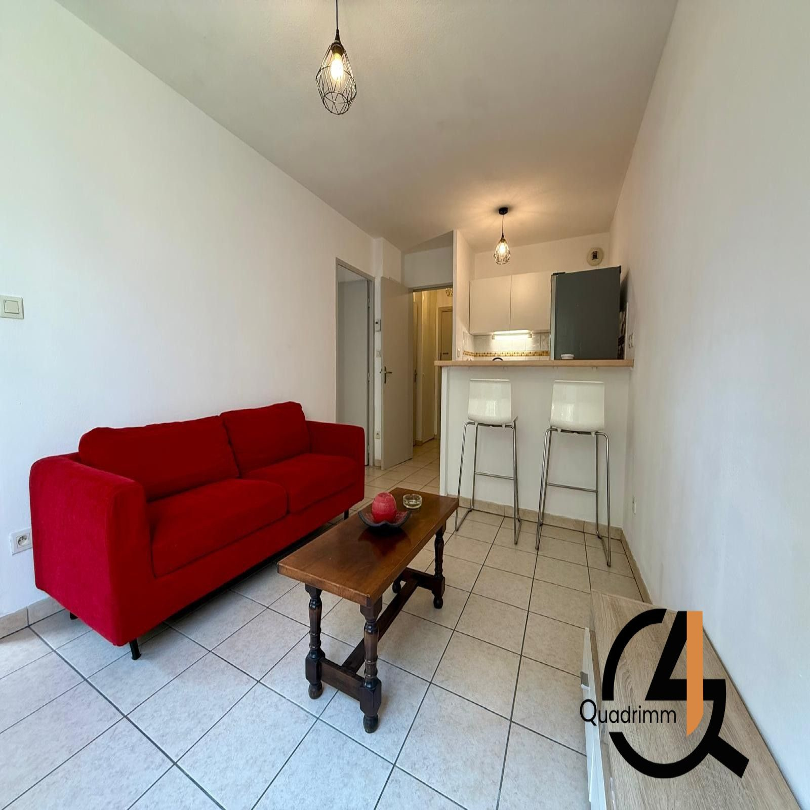 L'appartement se compose d'une entrée avec rangement, d'un salon/séjour avec cuisine semi-équipée, donnant sur une terrasse de 4,38m², d'une chambre avec placard, d'une salle de bains ainsi qu'un W.C séparé.