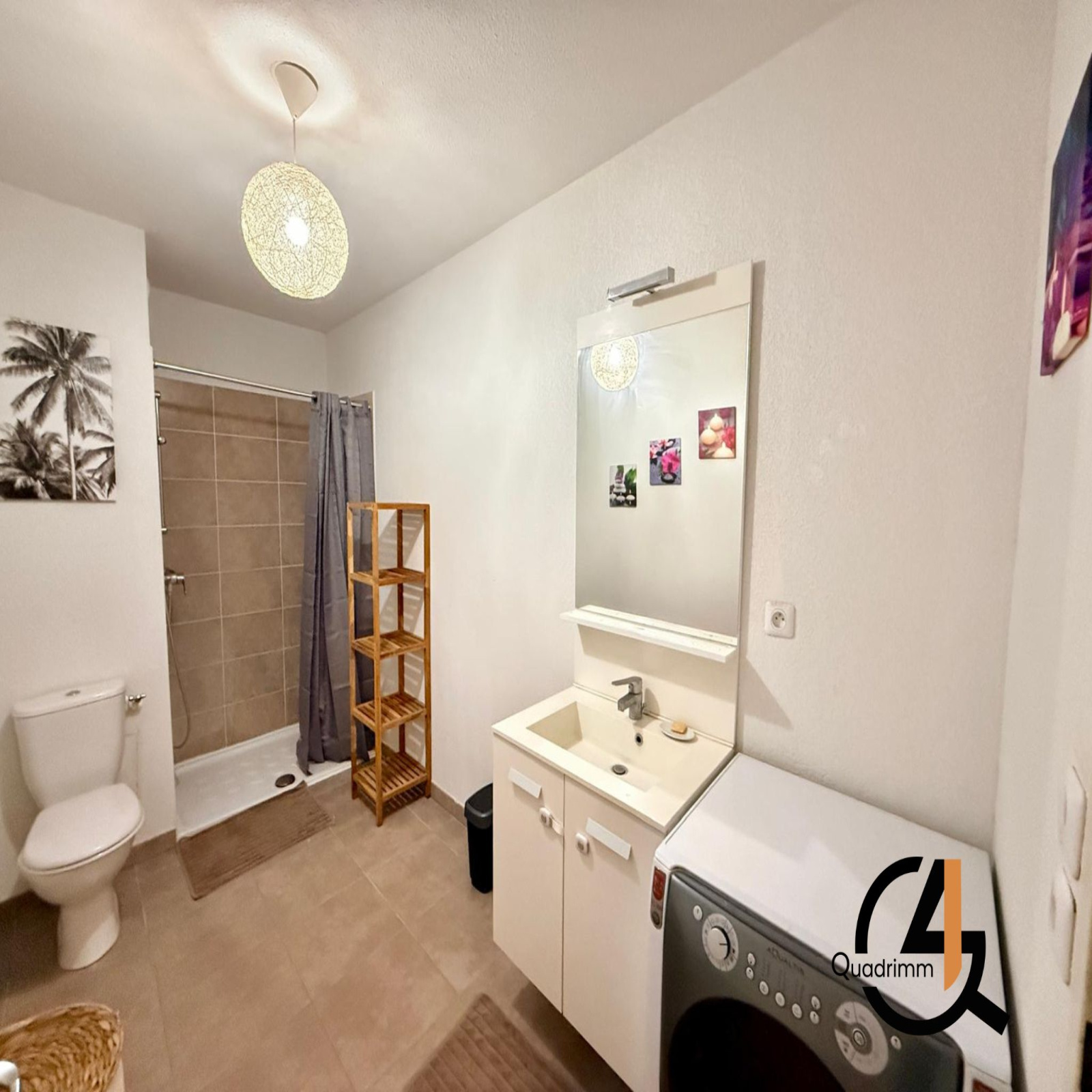 Le logement se compose d'une entrée, d'un séjour de 29 m² donnant sur une cuisine ouverte totalement équipée (plaques, hotte, four, lave-vaisselle, etc.). Vous bénéficiez d'une chambre avec placard et d'un bureau avec placard.