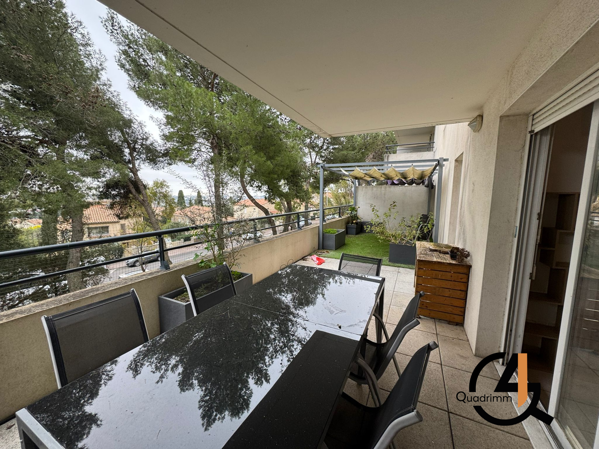 L'appartement se compose d'une entrée avec placard, d'un salon/séjour avec cuisine aménagée, donnant sur une terrasse de 29m², de 2 chambres, et d'une salle de bains avec W.C séparée.